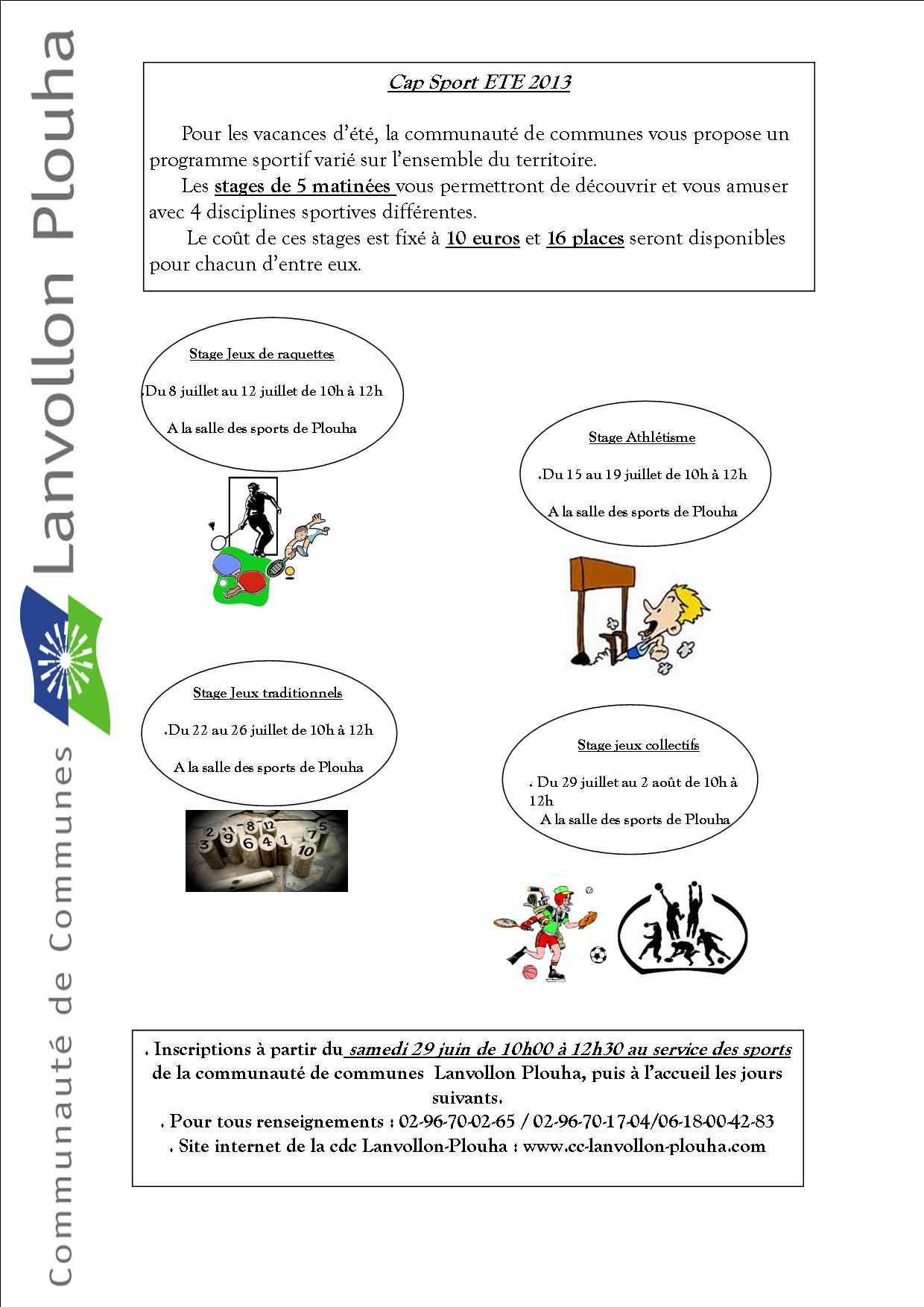 Pour les vacances d’Avril, la Communauté de Communes Lanvollon Plouha organise l’opération CAP Sports sur la Commune de Lanvollon.